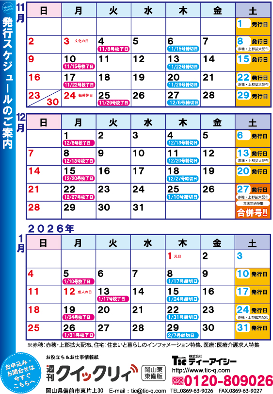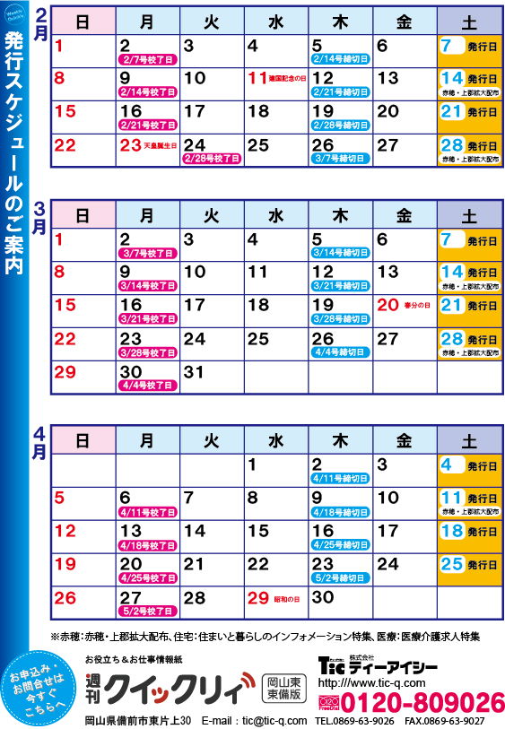 クイックリィ東備・岡山東版 最新発行スケジュール